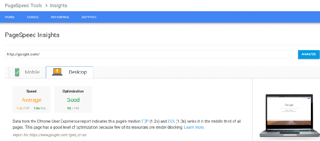 وب مستران به دنبال هر راهی هستند تا سرعت سایت خود را افزایش دهند در بالا تعدادی راهکار ارائه دادیم تا به وسیله آنها سرعت وب سایت را بهبود دهید. برای سنجش سرعت وب سایت نمی توان به این بسنده کرد که صفحات سایت در تلفن همراه یا کامپیوتر شما به سختی بارگذاری می گردد زیرا در این صورت به عوامل مختلفی بستگی دارد مانند سرعت اینترنت. برای سنجش سرعت ابزارهای مختلفی وجود دارد. مانند GTmetrix , Pingdom و… با استفاده از این ابزارها که هم رایگان هستند و هم غیر رایگان می توان اطلاعاتی مانند وضعیت سرعت سایت، وضعیت سئو سایت و از این قبیل اطلاعات را بدست آورد. یکی از ابزارها که گوگل در اختیار کاربران خود قرار داده است؛ Google Page Speed Insights می باشد. با استفاده از این ابزار نیز می توانید سرعت صفحات وب سایت خود را ارزیابی نمایید همچنین گوگل راه کارهایی را در جهت افزایش سرعت سایت در اختیار شما قرار می دهد. در زیر به طور مثال سرعت سایت گوگل را در تلفن همراه و کامپیوتر مورد ارزیابی قرار می دهیم:
