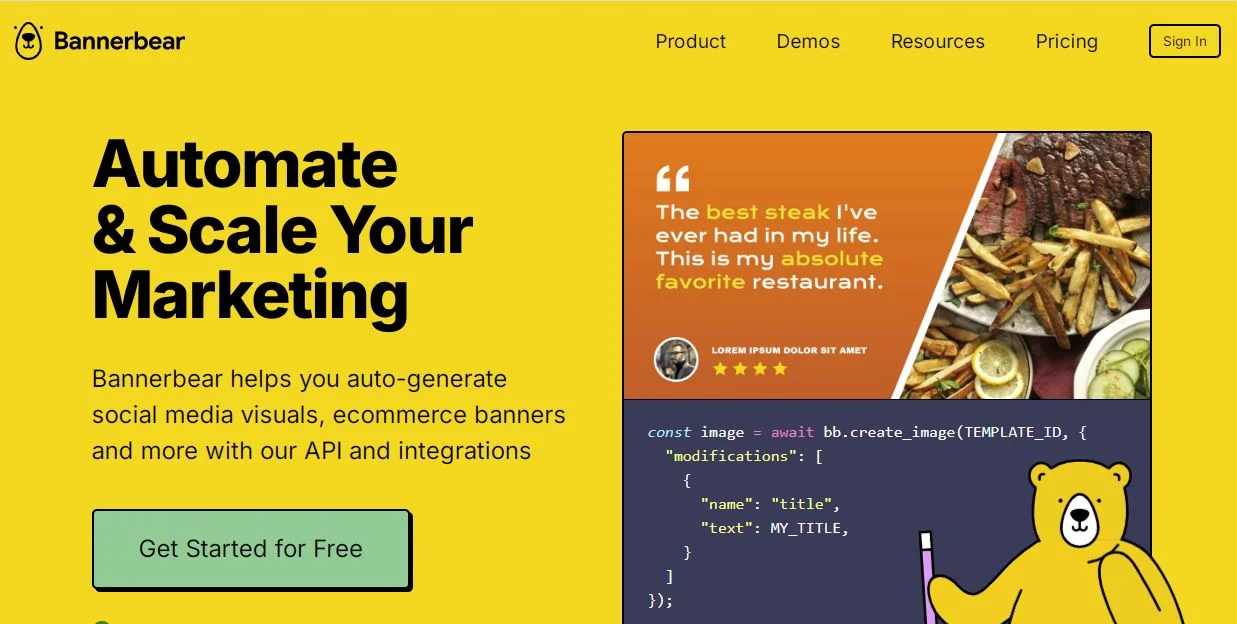 اگر برای ایجاد گرافیک پویا با رزولوشن بالا در ابعاد بزرگ مشکل دارید، برنامه Bannerbear می تواند به شما کمک کند. برنامه Bannerbear با قابلیت های پویا در تولید تصویر و ویدئو به شما اجازه می دهد صدها تصویر شخصی سازی شده را در عرض چند دقیقه تولید و در وقت و هزینه خود صرفه جویی کنید.
