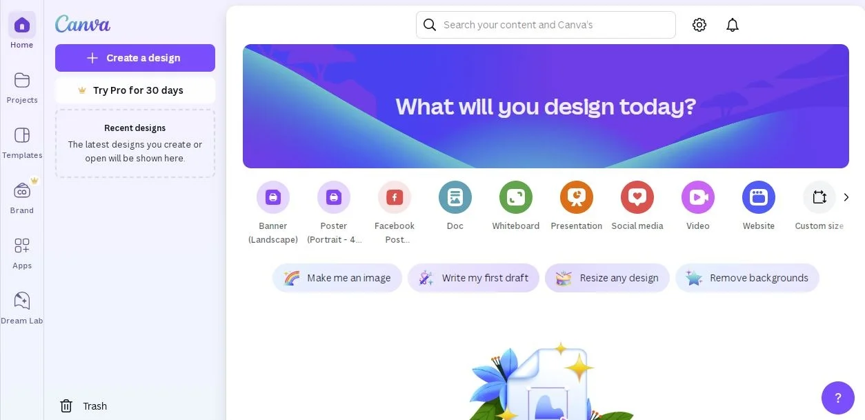 خوبی Canva این است که یک بنرساز هوش مصنوعی بصری و کاربرپسند است که طیف وسیعی از ویژگیها را ارائه میکند، تا در ساخت عکس تبلیغاتی با هوش مصنوعی و طراحی بنر سایت رایگان به شما کمک کند و بنرهای بصری جذابی را به راحتی ایجاد کنید.