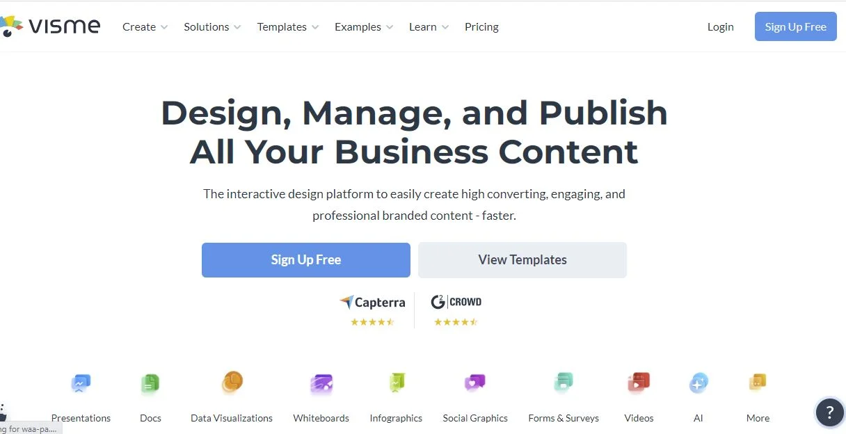 سایت Visme طیف وسیعی از قالبهای قابل تنظیم را برای طراحی بنر سایت با اندازهها و سبکهای مختلف ارائه میدهد. با Visme کاربران می توانند بنری متناسب با نیاز و سبک برند خود طراحی کنند.
